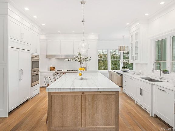 You cannot beat the location of this brand new Modern Farm House due for completion in September 2021. Walking distance to the train, Farmer's Market, the library, downtown Westport & 5 minute drive to Longshore & Compo Beach, Westport's crown jewels. Sited on +/- .70 acres on sought a after cul-de-sac with river rights, this home is a winner for today's discerning buyer. Enter the 6FT French Glass door to a generous foyer opening to a large Great Room encompassing a living & dining area, gas fireplace, custom paneled ceiling that flow in to the huge kitchen via a butler's pantry. The kitchen , a chef's delight has custom cabinetry a large center island, walk in pantry, high end appliances & access to deck, is open to the huge family room with fireplace & double sliding doors to an expansive Trex deck overlooking the beautiful back yard w/room for pool.. A mud room & powder room complete the main floor which is flooded with light & has 5 1/4" character white floors thru out. The luxurious Master Suite on the 2nd floor has a cathedral ceiling, gas FP, his & her walk-ins, spa like Bath.4 more BRS, 2 with their own BTH and 2 w/Jack 'n Jill & laundry complete this floor. The the walk out lower level has a playroom, storage & potential for more rooms and has great natural light Great curb appeal, an ideal floor plan , incredible finishes & attention to detail, beautiful landscaping , prize location & great water views makes this home top of class!