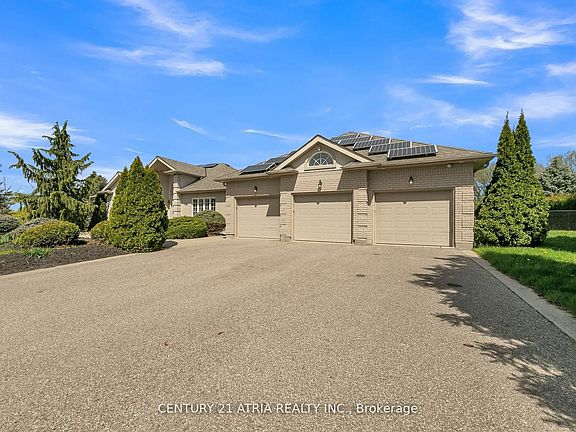 This stunning bright and spacious corner unit bungalow located in the prestige area of "Sharon hills' on an amazing 1.031 Acre landscaped lot . 6 cars heated garage that can have a lift added for more cars, high ceiling with floor drain. Builder original with 9ft & 12ft ceilings on the main floors. Custom bar in the basement build with oak wood. California shutters on all windows ultra private yard with gorgeous pond it's a must seen! full security camera system & solar panels. Main floors has granite kitchen counter, central vac bar stoles included in basement. Large windows throughout providing natural lights. Beautiful well maintained landscape.