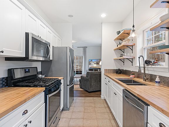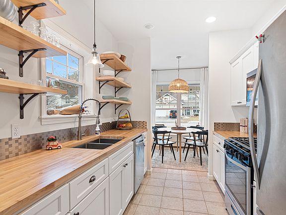 This move-in-ready Autumn Knoll townhome sits on a quiet and private lot backing up to conserved land in a prime Essex location close to everything you could need! Inside, you’ll enjoy a fantastic layout and many updates including a fresh coat of paint throughout, new lighting and plumbing fixtures as well as a newer boiler. As you enter this home through the front door or the attached 1-car garage, you’re greeted with a bright and sunny entry with plenty of space to hang your coat. The cute and cozy dining nook provides the perfect place to enjoy your meals and leads right into the beautiful kitchen featuring butcher block countertops, stainless steel appliances and modern open shelving! On the back half of the home, you’ll find the spacious living room with a sliding glass door that leads out to the back deck, the boldly painted powder room, as well as a great flex space to use as an extra sitting area, play space, formal dining room or however else you see fit! The second level holds tons of additional space with a bonus room that serves as the ideal office, a 3/4 bathroom off the main hallway, a combined laundry and utility room as well as two nicely sized bedrooms. The spacious primary suite not only features a walk-in closet but also a lovely ensuite complete with double sinks and a jacuzzi tub/shower with subway-tiled walls. Offering the perfect combination of style, convenience and location, we know this one won’t last long, so don’t wait to schedule your showing!