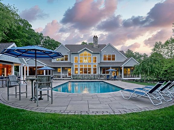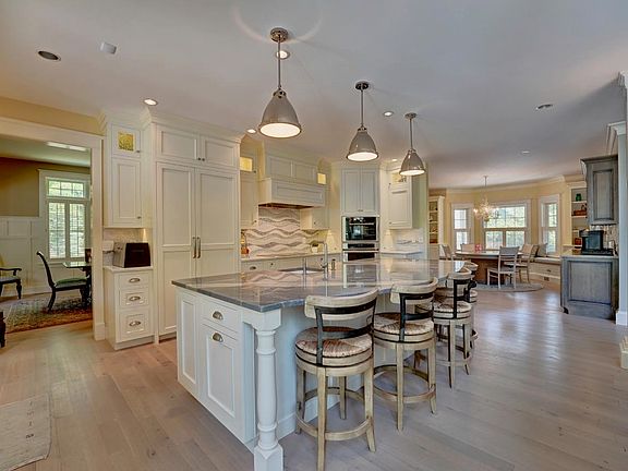 From the moment you arrive, you'll be captivated by the grandeur of the meticulously landscaped grounds and the striking facade of this modern style residence. Enter the foyer and you will be greeted by spacious living areas with soaring ceilings, oversized windows and rich hardwood flooring highlighted by natural light creating a sense of openness and warmth. Serving as the primary focal point of the 1st floor, the culinary kitchen offers every imaginable amenity with the highest quality appliances and custom cabinetry with a center island for entertaining. Continue through the 1st floor and you will find multiple dining areas, office and a 3 season fireplace screened in porch. Not one, but two primary ensuite bedrooms are available on both floors. Built for entertaining, the lower level offers a family room with an abutting wine cellar, media room, gym, and sauna. The outdoor spaces are just as impressive as the interior, with manicured grounds that offer endless possibilities for recreation and entertainment. Lounge by the pool on the expansive patio with cabana or indulge in al fresco dining. And for the car enthusiast, the garage may be the best part of all. An oversized light filled three bay space with custom cabinetry and epoxy flooring. Marjorie Way presents a rare opportunity to own a residence that embodies the pinnacle of luxury living. With its exquisite design, unparalleled craftsmanship, and idyllic coastal location, a true rare finding.