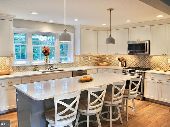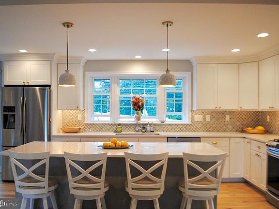 Unbelievable, but true: a fully renovated, walk-to-Wayne home with an open floor plan for under $1M! This single-family home was completely renovated in 2017. You must see this beautiful cul-de-sac property, where all the work has been done for you! The current owners tastefully updated this home to keep the charm but add modern amenities. The main level features a completely open floor plan, gorgeous hardwood throughout, and recessed lighting. The stunning kitchen boasts ample, soft-close cabinetry, quartz counters, an oversized center island, extra large sink and stainless appliances. You will not find this kitchen at this price point elsewhere in Wayne. The living room has a lovely, deep bay window that opens to the kitchen, to the left of the oversized island is a dining area with access to a new trex deck and a patio. This layout is an entertainer's dream! The main level also has a full bathroom and a 4th bedroom that is currently used as a playroom, with a murphy bed that doubles as a guest room. Upstairs, you'll find the master bedroom outfitted with 3 large closets and 2 large windows. The hall bath has been completely redone to feature a subway-tiled bath and a marble-top vanity. The two additional bedrooms are sizeable, and one has a charming alcove. The water-proofed basement has a new drainage system and has been reserved for storage space and laundry. Outside, the deck has steps that lead to the entirely fenced yard with privacy trees, which were recently planted along the perimeter and will mature for full coverage, making this your own private oasis just steps from downtown Wayne. A large shed is also in the back to ensure ample outdoor storage. There are new windows throughout the entire home. Come see this gorgeous gem and settle into the walk-to-Wayne lifestyle with ease! Wayne train station, Cornerstone, The Great American Pub, Blue Elephant, Gryphon Cafe, Wayne Fine Art, Blue Beret, and more are all within few minutes walk. *Square footage is likely larger than indicated in public records. Bring your suitcase and move right in!