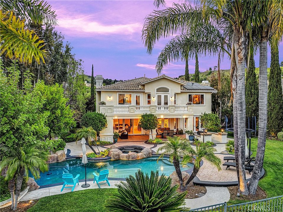 Introducing 4 Marquette Way, a beautiful residence nestled on nearly half an acre, exuding contemporary elegance and offering sweeping vistas of Coto de Caza’s reservoir and the majestic Saddleback mountain range. Step inside to be greeted by soaring two-story ceilings, framing the formal living and dining areas. The chef's kitchen boasts quartz countertops, subway tile backsplash, ample bar seating, a walk-in pantry, and stainless steel appliances, seamlessly flowing into the light-filled family room with a bespoke fireplace facade and mantel. The main level encompasses a guest suite, a well-appointed office with floor-to-ceiling built-ins, a powder room, and a generous four-car garage. Ascend the staircase to discover the expansive master suite, featuring plank tile flooring, quartz countertops, a spacious walk-in closet with custom built-ins, and breathtaking views from its expansive private deck. Upstairs, three additional bedrooms, two bathrooms, and a bonus room with a private balcony await. The backyard oasis, a haven for entertaining, boasts a California room with a fireplace, a sparkling pool and spa, a built-in BBQ with island seating, lush landscaping, and unparalleled water and ridge line views. This property also features OWNED SOLAR. Located in coveted North Coto, mere minutes from Rancho Santa Margarita shops and restaurants, this residence epitomizes luxury living at its finest. Don't miss the opportunity to experience one of Coto's most magnificent estates.