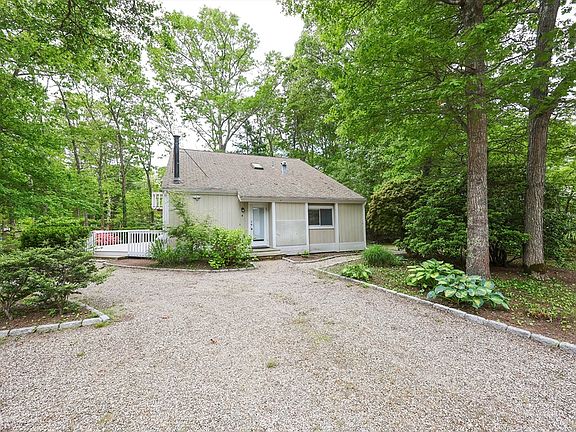 Warm and charming contemporary home nestled in a highly desirable New Seabury neighborhood on a spacious and private lot. This home is conveniently located directly across from beautiful Fells Pond, where you can enjoy swimming, paddle boarding, kayaking, and fishing. There's easy access to Popponesset Marketplace, golf course, hiking trails, Mashpee Commons, etc. Home offers a versatile layout with 3-4 bedrooms, 2.5 bathrooms, an open floor plan with beautiful vaulted wood ceiling in many rooms, has hardwood flooring thruout, gas heating & cooking, and central AC. Bright open kitchen with stainless steel appliances, granite countertop, and a breakfast bar. Renovated bathrooms with nice modernized designer tile work. Spacious 2nd floor family room with exterior balcony, and overlooks the main floor. Exterior with newly painted siding & deck, new septic, outdoor shower, shed, & plenty of yard space. You can either enjoy this home year-round, or it can make for a great rental investment.