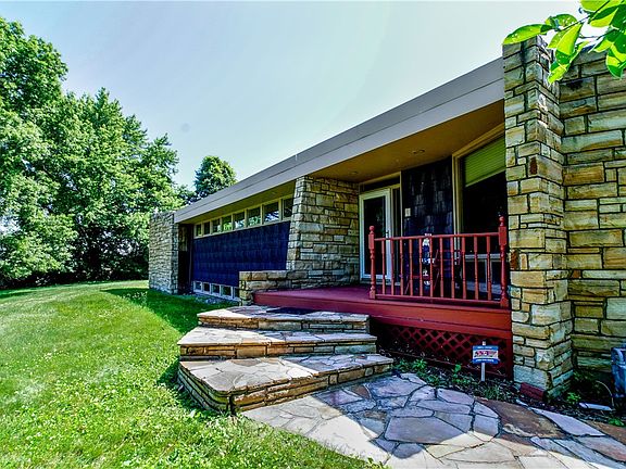 A one of a kind! Unique architecture will inspire your love for homey creativity in this stone ranch nestled away on 3.5 acres with a spacious open flow layout enhanced with walls of glass, stone and wood that make a bold statement! Equipped kitchen with granite countertops and appliance package, enclosed flagstone patio and big formal living and dining rooms! 3 roomy bedrooms with a pretty master en-suite with walk-out stone patio! Finished lower level has a family room with fireplace, 4th bedroom/home office/den and a full bath ideal for a guest suite! Decks, flagstone walkways, integral garages and detached garage with workshop! Serene and tranquil views of the lovely grounds has a feel for country living yet only minutes to Rt119 as well as centrally located between Connellsville and Uniontown!
