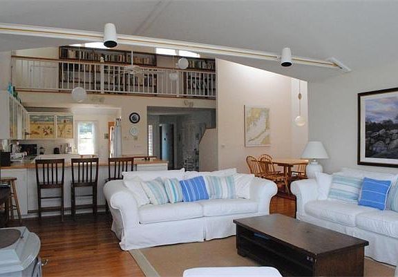 South Nonquitt!!! Five bedroom shingled contemporary overlooking rolling fields with dazzling views of Buzzards Bay and saltmarsh pond. Dramatic open floor plan offers cathedral ceilinged living room, dining room, wood stove and sliders to deck and large screened porch. Spacious, newly renovated kitchen with island, stone countertops...adjacent mud/laundry room...Nicely separated bedroom wings; each with two bedrooms, full baths and master bedroom above with gorgeous ocean views...Hardwood floors throughout highlight this sunny beach house....Sit on the deck and you will see an amazing array of wildlife, watch the sailboats glide by on Buzzards Bay or enjoy the blazing sunsets over the permanently conserved rolling meadows and the saltmarsh. A barefoot walk to Nonquitt's three white sandy beaches, tennis courts, golf course, day camp...Unpack your bags, the kids and the dog and let summer begin!!!