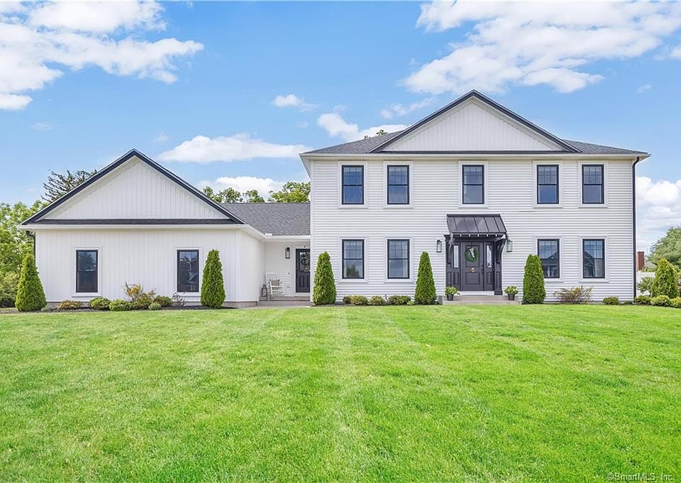 Better than new!!! This Custom Modern Farmhouse home offers the relaxed Farmhouse style with all the modern touches! You will be wowed by the expansive open floor plan and its sophisticated design elements like black windows, wide plank hardwood floors, Wood Beams, quartz counters, custom built in vented hood, white GE cafe appliances, gas stove, a clean two toned custom kitchen w/ brass accents, built in island table and cabinets with quartz counters in dining area, a brick wall gas fire place sitting room open to a cozy and comfortable great room! The formal dining room impresses with wide plank hard wood floors, built in side hutch and board and baton walls !There is a functional mudroom with built in boot bench, laundry and a beautiful tiled half bath! The Primary Bedroom stuns with board and baton, large walk in closet and a full bath with a gorgeous claw foot soaking tub, separate shower, linen closet and double sink Carrera vanity! There are three additional large sized bedrooms that share a full tiled bath. The basement is tastefully finished into two rooms with LVP floors and a gorgeous half bath! Great space for a playroom or office! So much to offer! A 3 car garage, C/A, C/vac, breezeway porch, beautiful yard just waiting for your pool! Truly a decorators dream with a stylish flare and sleek lighting throughout! Located on a quiet, sought after cul-de-sac near the center of town! Close to Bradley Airport, Hartford/Springfield, Boston & New York!