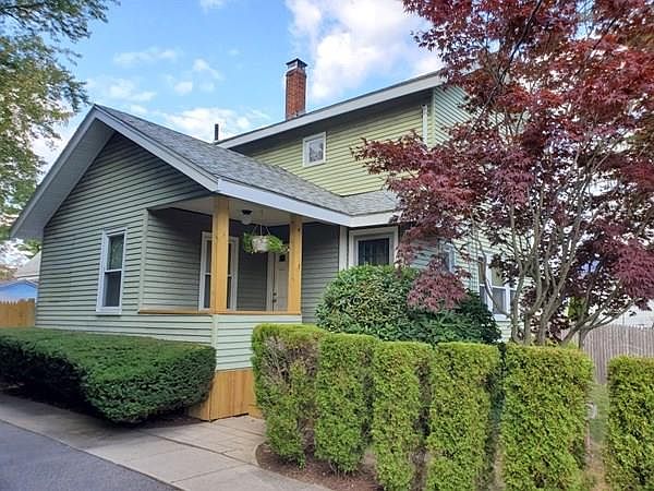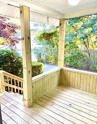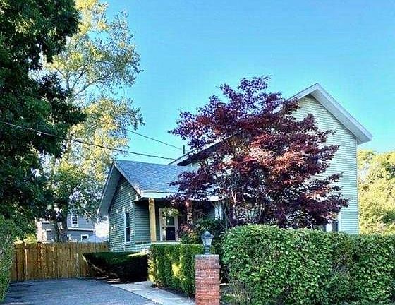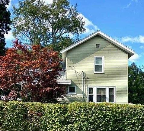 Lovely Colonial on corner lot featuring kitchen with cathedral ceiling, skylights, ceiling fan, SS appliances, and vinyl flooring, dining room with hardwood flooring leading to the living room, also having hardwood flooring, and French doors. The 2 bedrooms and 1 bath are on the second floor. There is a family room in the basement. The roof, deck, and the vinyl windows have been updated within the last 10 years. The front porch is new. The home has aluminum siding, an inground pool with a new liner, a cabana with finished interior used as a media room, shed, and a fenced in yard on almost half an acre of land.