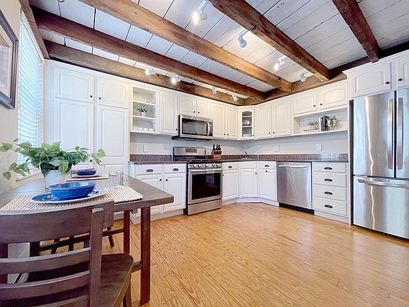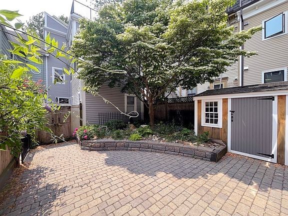 Open House Cancelled -Unique property with private courtyard/garden, which is located down a secluded pathway through its own private gateway — includes many mature perennials with over a 1000 bulbs — a finalist in the Boston Garden Contest! This single-family home is a fantastic alternative to condo living — a beautiful blend of modern amenities and historic 1860s charm. Once you enter the home, you will be greeted by an inviting updated kitchen; complete with wooden exposed beams, stainless steel appliances and granite countertops. Just off the kitchen, you will find a lovely half bath and laundry area. Make your way up one level and discover the sunny living area with original wide pumpkin pine floors and a wood burning fireplace. You will also find a spacious full bathroom on this level. Head to the top of one more set of stairs and enter the cathedral-ceiling primary bedroom, complete with a skylight. A second cathedral bedroom and hallway storage round out this level of the home