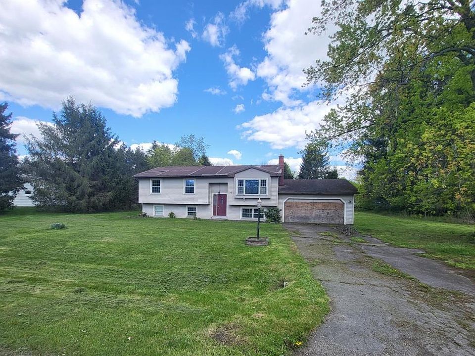 This split-level 3 bedroom, 2 bath home needs some work but it is in a great neighborhood in Dryden schools and a close commute to Cortland or Ithaca. The upper floor has the bedrooms, living room, kitchen, formal dining room and a 3 season sun porch overlooking the 1/2 acre lot. Downstairs is a family room, laundry and entrance to the 2 car attached garage. The basement has big windows and there is room for more bedrooms or an office as half the basement is not yet finished. Home has been vacant for years and needs some TLC. Only cash or rehab/construction loans please. Get your tour in quick before it's gone..