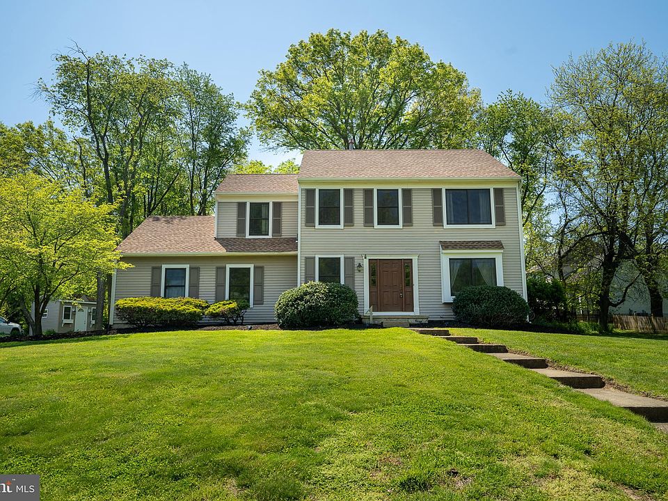 Move into this 4 bed, 2.5 bath colonial home in Moorestown! The interior affords a seamless flow for comfort and formal entertaining with hardwood floors throughout. The formal living room is open to the dining area, filled with lots of natural light. From the dining room, enter your open layout eat in kitchen complete with stainless steel appliances. Your kitchen overlooks a sun-filled family room that provides access to your patio and wooded backyard. The first floor comes together with a separate laundry room, and hall bath. Upstairs a spacious primary suite offers a walk-in closet and en-suite bath. The three additional bedrooms are gracious in size and share their own hall bath. When you want more space, the lower level is partially finished with lots of storage space. Please note this property is being sold in AS-IS condition.