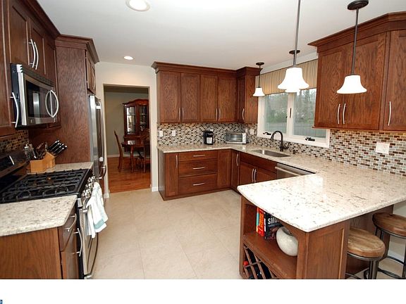 BEAUTIFUL UPDATES CLASSIC CHARM! This 5 bedroom, 2.5 bath home is sure to impress with a bright open floor plan, beautifully remodeled kitchen, gleaming hardwood floors and plenty of space for everyone! A welcoming foyer creates a warm and inviting first impression with stylish oversized ceramic tile floor leading to the heart of the home- a gorgeous fully updated custom kitchen! This delightful space features loads of customized cabinet space finished with crown molding and equipped with all the bells and whistles- including a lazy Susan and full pantry with pull-out drawers, gorgeous quartz counters, stainless steel appliances, stylish pendant lights over a breakfast counter, sunny double window over the sink, built-in microwave, recessed lights and an eat-in area with more storage and counter space! The formal living and dining rooms create a sophisticated back drop for family gatherings with beautiful hardwood floors, great flow and an abundance of natural light. There is also a family room with a handsome built-in entertainment center and an airy vaulted ceiling. This level also boasts a bedroom and a full bath, plus an additional large sitting room with French doors leading to the back yard- ideal for an in-law suite, teen room or additional recreation space and home gym- whatever suits your needs! Upstairs, the generously-sized master bedroom offers two closets and a ceiling fan. There are three more bedrooms, an updated full bath and a unique loft/office space ideal for a home office. This move-in ready home also offers a beautiful decorator paint palette, new hardwood floors on the stairs and in the living and dining rooms, a convenient first-floor laundry room and a completely updated powder room. A fully-fenced in level back yard has plenty of green space graced by an enormous Japanese maple tree. Located in one of East Windsors most desirable established neighborhoods, this charming home is ready and waiting to make new memories with its lucky new owners!