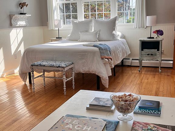 Spacious Furnished Studio Apartment. All inclusive (WiFi, oil heat, electricity, parking) in this light filled space. Private charming neighbourhood. Separate entrance. Wood floors with slider out onto private deck overlooking beautiful large grassy park like yard. Full bathroom with tub and shower. Private parking off street/garage. Beautiful neighbourhood a mile from the beach. Outside of town off Shore Road near Weekapaug. Owner pays for heat/air, wifi, electric , water. Nonsmoking. Parking in garage