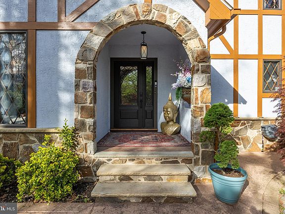 Welcome to 4 Meadowbrook Drive, a distinguished English Tudor residence surrounded by meticulously landscaped bushes, trees, and flowering plants that evoke the timeless beauty of an English country garden. The attention to detail continues inside the home, where you will find thoughtfully planned custom details in every room. The inviting two-story foyer welcomes you with hardwood floors, an updated designer light fixture, a custom high-end entry door, and an open staircase—an ideal space for showcasing artwork or statement pieces. The hardwood flooring continues seamlessly into the spacious eat-in kitchen, which has been recently updated with new cabinetry, marble tile countertops, double wall oven, an electric range, and a large farmhouse sink positioned beneath a sunny window with picturesque views of the backyard. A French door from the breakfast area offers effortless access to the outdoors, making indoor/outdoor dining a breeze. Just off the kitchen, is the formal dining room, featuring a stately stone fireplace and new luxury vinyl plank flooring in rich wood tones. This space flows gracefully into the light-filled four-season room, where vaulted ceilings, a skylight, and two sets of new sliding doors and windows provide 180-degree views of the stunning grounds and pool—truly a space to be enjoyed year-round. The main level also includes a home office, formal living room, a convenient main floor laundry room with access to the two-car garage, and a half bath powder room. Upstairs there are five bedrooms including the primary bedroom. The expansive primary suite is a true retreat, complete with vaulted ceilings, a walk-in closet, an additional closet, a cozy sitting area, and a spa-inspired primary bath featuring a marble-tiled shower and a separate soaking tub. A second, updated full bath is located off the main hall. Step outside to your private backyard oasis, where mature hedges and lush plantings offer privacy and a picturesque backdrop. The beautifully maintained inground pool is surrounded by a spacious patio, perfect for entertaining, sunbathing, or unwinding in the shade beneath the built-in gazebo. There is also an outdoor shower for added convenience. Additional features include new premium exterior doors, a newer roof, newer HVAC system, new garage doors, a new pool heater, new light fixtures, a partially finished basement with dedicated storage, and a full-home sound system with indoor and outdoor speakers. Outdoor furniture, basement and garage storage shelving will remain for the new owners' convenience. Don’t miss your opportunity to own this truly exceptional home that the current owners lovingly refer to as the Shangri-La of Shamong. Schedule your private tour today.