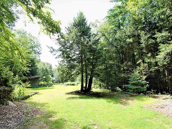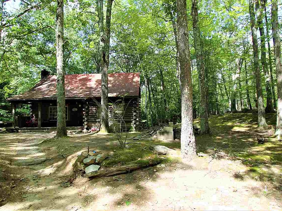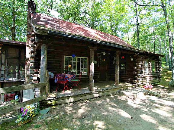 Real log cabin in a wooded setting! Rustic 2 bedroom home has an eat-in kitchen; living room with log beamed cathedral ceiling and wide pine floors; full bath; 1st floor bedroom and screened porch. The open staircase to the 2nd floor bedroom is an attractive feature. There is a full basement. You'll enjoy sitting on the front porch overlooking the tranquil yard. There is a detached one car garage with workshop which also has an attached carport. The Buildings do need TLC-being sold "as is". Pawtuckaway State Park is located down the street.