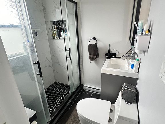 NO BROKER FEE! Available JUNE 1st. NEWLY RENOVATED 3-bedroom, 2-bathroom apartment. Central heating and cooling controlled over wifi. Kitchen with new appliances (fridge, stove, microwave, dishwasher) and quartz countertops. Nice deck out of the kitchen to get lots of light and beautiful sunrises. Spacious bedrooms with plenty of natural light. Closets in each bedroom and additional storage area. Both bathrooms feature new showers, toilets, vanities (mirror with medicine cabinet). New floors and recessed lights have been installed. Unit is lead-free. Coin-op washer and dryer in the basement. Exterior recently redone including siding, front deck, and stairs. Plenty of on-street non-permit parking available. Landlord may consider renting garage parking spots.