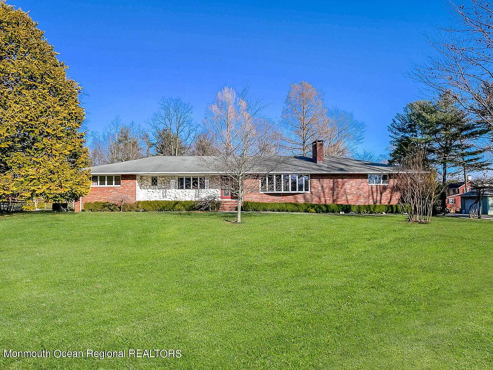 Lovely 3 bed, 3 bath stone front ranch is just waiting for it's new owners to add their own personal touch. Double door entrance greets you into a bright foyer. Home offers large eat-in kitchen with center island, beautiful great room featuring a stone accent wall with fireplace, spacious bedrooms, inviting den which can be used as a bedroom, 3 car garage & whole house generator. Expansive full finished basement has full bath, bar & multiple entertainment spaces. You will enjoy outdoor fun in the private & serene backyard with a huge deck & large shed. Colts Neck offers a great sense of community pride, proximity to great beaches, parks, horse farms & NYC transportation.