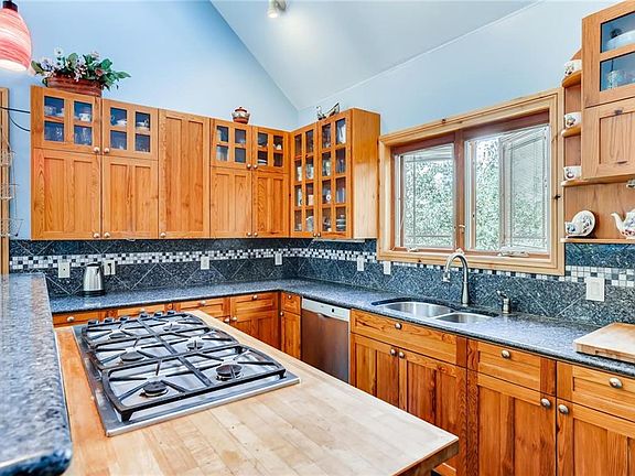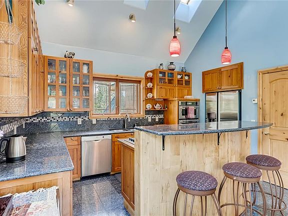 WOW! Rare .51 acre, nicely treed lot with fantastic views of Mt Royal.Walk to town or watch the local moose graze from your deck. Main living area boasts vaulted ceilings allowing for maximum view and sunlight from oversized windows. Home rebulit in 2004. Radiant heat, solid maple floors, knotty alder doors, granite, stainless in kitchen. Too many upgrades to list. Sauna, rec room, reading loft and separate office make this the perfect home to work/live. Zoning allows for additional structures