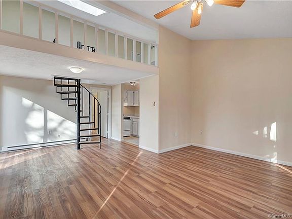 This beautifully maintained condo offers privacy and low-maintenance living. Bright and open living space is highlighted by high ceilings and a skylight. The spacious deck off of the living room offers serene views of wooded property. A loft maintains the open feel, providing space for an extra living room or office. The end unit is freshly painted with newer floors, air conditioner, and dishwasher, plus updates in the bathroom. Close to several hiking trails and walking distance to Lake Quonnipaug, the location is ideal for those who love the outdoors and want to remain close to shoreline shops and restaurants. Pet friendly with plenty of storage. Call today for your private or virtual showing.