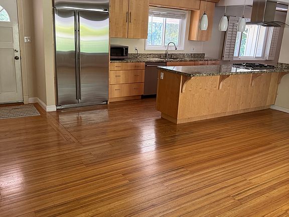 Best deal in Orinda. Drive up a long newly-paved driveway to a private hilltop promontory with an expansive view out over the valley below. The 4 bedroom 2 bath house has been completely up-graded, and is in perfect condition. The modern kitchen includes state of the art appliances, there is central air and hardwood floors through-out. A beautiful house in a serene and private location. The grounds have been recently changed to a drought-friendly ecology with the large lawns removed in favor of native landscaping. Pets, especially dogs, are encouraged. Please be in contact to see the property. Owner pays for monthly gardening. Tennant pays for all utilitis