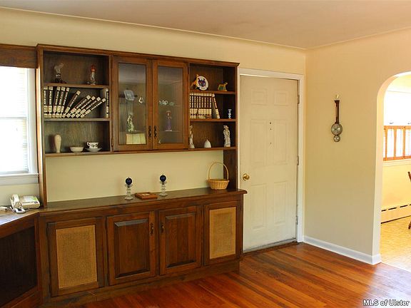 A rare offering! Affordable, solidly built with quality materials, this Rosendale home with town water in Rondout Valley School district is located on a quiet neighborhood street with just under an acre of land bordering the local Rail Trail. Walk or bike to the village, or across the tressle, just for fun. Both are easy from this hill-top neighborhood home. So much is offered; living in one of the coolest towns in the Hudson Valley. This home features: * BRAND NEW HEATING SYSTEM AS OF JAN 2016, * Newer architectural shingled roof; * Hardwood floors in living room, bedrooms and back sun porch; * Solid-cherry custom kitchen cabinets with built-in pullout cabinet drawers and corner-cabinet lazy-susans; * Corian counter-tops; * French glass tile floor in bath; * Built-in solid cherry book case in living-room; * Wood stove in family room; * Finished basement on separate thermostat, with separate outside entrance, offers plenty of potential for a family room or game room; * Additional 12 x 12 room in basement can be used as extra bedroom, crafting area or office space; * Spacious two- plus car garage offers plenty of room for workshop as well as two vehicles; * Some replacement windows; * Outdoor deck overlooking wooded area and rail trail; * Entire lower level can be set up as a semi-private space for parents, in-laws, or adult child with separate entrance; * Garage built to support addition of second story; expansion could include formal living room, master bedroom suite, additional bedrooms for a growing family, or perhaps that perfect home office space. * Enclosed space under outside deck offers additional storage space for bikes, tools, sleds, etc. * Manhattan is 1.5 hrs by car or convenient bus stop in town. Recent updates include: wallpaper removal and fresh interior paint Situated in a migratory corridor for a wide variety of birds, wildlife viewing is a bonus. Relax on the outdoor deck that overlooks the back yard, woods and rail trail while simultaneously enjoying tree-top viewing from your deck. This gem of a home is not only affordable, but offers practical and comfortable one-level living. This home's quiet neighborhood setting is within walking distance to Main Street Rosendale's restaurants and shops, supermarket, library and movie theater. Always hopping, the small town of Rosendale is robust with street fairs, farmer's markets and festivals. The area also boasts several award-winning spas including the #1 voted spa in the US. The adventurous can enjoy hiking the Shawangunk Ridge, rock scrambling in the Mohawk Preserve or biking to New Paltz via the local rail trail conveniently accessed down the street or thru the back woods of your own property. What a perfect central location; minutes to the historic hotspots of High Falls and Stone Ridge, less than 10 minutes to New Paltz, and under15 minutes to Kingston. The Trailway bus stop to NYC is less than a mile away and will have to you Manhattan in 1.5 hours. Walk to the local town recreation center with new pool coming soon, children's center, tennis and basketball courts, and baseball field. There is something for everyone in Rosendale, and this home provides access to it all!