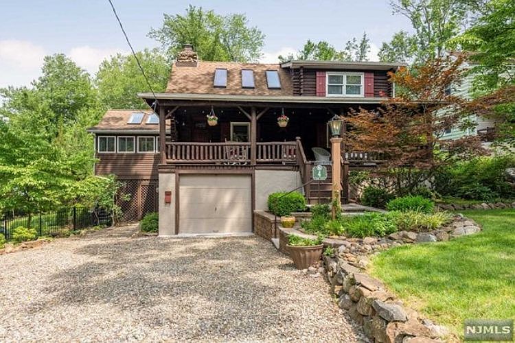 Fall in love with all the charm and beauty of this log home. Relax in the summer on the large front porch.Enjoy cozy winter nights sitting in the vaulted 2 story Living rm w fieldstone fireplace, newer hardwood floor, skylights and exposed log walls.The Dining rm is spacious with a table for 6, hardwood flr and large closet. Updated Kitchen offers oak cabinets, ceramic tile floor, stainless steel appliances, butcher block counters, pantry and slider into the Fam rm.Enter into the light and bright Fam rm w walls of windows let you enjoy the views of the lush landscape and backyard salt water pool.Updated baths easily combine modern amenities with old world charm.Bedrooms have beamed and wood ceilings.Finished basement w wood floor, Laundry rm, large Closets, Storage rm and Utility rm.Easy walk to Lake and beach.