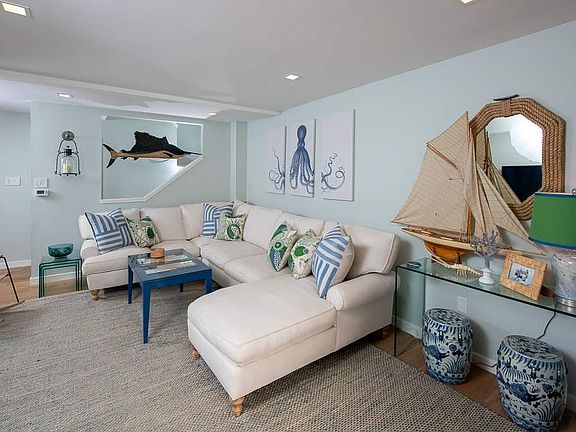 The Best of BOTH Worlds....Be direct Bayfront and only a block and a half from the Beach! Village on the Sound is one of Longport's best kept secrets. An open and inviting floor plan welcomes you the moment you step inside. A custom kitchen with Caesarstone countertops, stainless steel gas range and hood, marble backsplash, pantry and Liebherr refrigerator with a two drawer freezer is a wonderful place for cooking after a day on the water. The built in banquette dining area creates a warm and comfortable setting. Just off the living room is a raised deck with bay views that lead down to the sprawling lawn and common area deck and docks. The second floor of the Robert Johnson designed Townhouse has the Master Bedroom and Bath with cathedral ceilings and its own private deck that provides magnificent views of the bay and sunsets. A hallway full bath with a tub services the guest bedroom. Custom built in bunk beds allow sleeping accommodations for 6....each with their own USB charging ports and light dimming switches. The entire unit has a one switch mood setting custom lighting system that turns all of the common area lights on and off with the touch of one button. The window shades are also remotely controlled. Recent upgrades include the replacement of all doors and hardware with high end finishes, a tankless water heater and spray foam insulation. This is a one of a kind townhome that's ready for the next owners to enjoy......