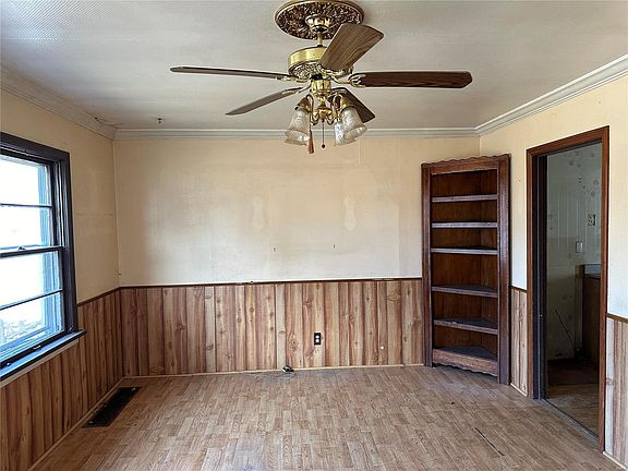 - Features: Floor Covering: Laminate, Wall Covering: None