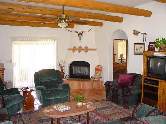 20.57 acres, BLM on 2 sides, Nearly all fenced and gated, 1/2 of the acreage is level and vacant, could be split or developed. Creek runs through property, Gold Mine on Property, Horse barn, tack room, corrals, stalls, private well. Home is immaculate, high ceilings w/pine vigas, saltillo tile, beehive fireplace, master had jetted tub. 2 car garage w/extensive cabinets, Jacuzzi, covered patios, and walled courtyard. New paint inside, RV Hook up, Dog Run, New carpet, reverse osmosis water... Owner may carry w/35% down up to 10 years