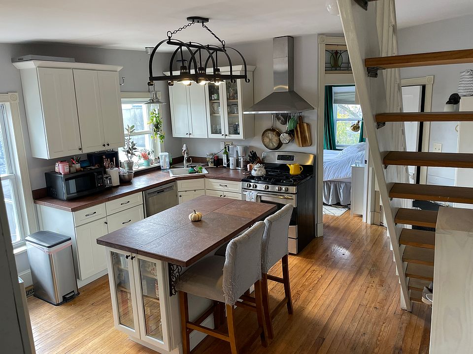 Charming light-filled historic end unit 1 Bedroom + LOFT 3rd Floor Apartment with walk out rooftop deck with panoramic views of the harbor and city - with most utilities included! Backs up to a community garden and Castle Street Park. Original hardwood floors, stained glass cornices, in unit washer-dryer, spacious kitchen with large island.