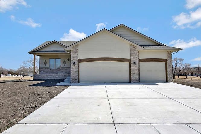 Brand new home available in the sought after Valley Creek Estates Addition. This beautiful ranch home features 1,367 square feet on the main floor with a split bedroom plan. The master bedroom is finished with lovely crown molding, a walk out to your deck, and a walk in master closet that conveniently opens to the main floor laundry/mudroom. The living room features vaulted ceilings, a gas fireplace, and access to your screened in porch finished with composite material, no/low maintenance! The kitchen features an island with granite counter tops, separate pantry, and opens to the living and dining areas for a nice, open floor plan. Two more generous size bedrooms, and an additional full bath finish off the main floor. Lots of upgrades have been added or will be added to this home upon completion including: granite counter tops, onyx master shower with seat and glass enclosure, wood clad windows with stained mill-work, and crown molding added on doors and windows throughout the interior. The three car garage is ample in size and the home is located on a cul-de-sac lot that is close to the neighborhood pool and park. The basement will be ready for the new home owner to finish out when ready, to suit their taste and needs. This is a great home in a fantastic subdivision within the Valley Center School district. The City of Valley Center has also just passed a tax rebate for the city's portion of property taxes paid annually (estimated amount of $1,200-$1,400/yr), this rebate will last for 5 years and is valid for new construction, first time occupants only, see attached rebate application and please contact the listing agent for additional information and to find out what these savings will mean for you, the home owner! This home one is great buy, call today to see this lovely home!