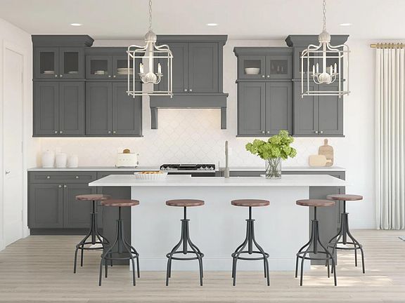 Spectacular kitchen with Brellin Greyhound cabinets & pendant lights