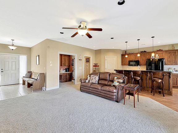 Welcome to this well maintained patio home. If you are looking for a new to you home with almost zero exterior maintenance, this is the one! The HOA dues include trash and recycling service, mowing, fertilizing the yard, snow removal, sprinkler system start up and winterization, and exterior painting. This zero entry patio home has the most ideal set up. From a beautiful foyer as you walk in, to the open concept living room that flows directly into the kitchen and dining area. Living room features a gas fireplace and a large window view of the covered patio. Kitchen features a large kitchen island that doubles as additional seating. Plenty of storage with the corner walk in pantry. Off of the living room you will find the very charming pocket office with paned French doors. Such a great feature to have the benefits of a separate office space that doesn't take the space of a full bedroom. The primary bedroom is spacious with a large window overlooking the backyard and houses the master bathroom which features a large vanity with dual sinks, built in storage, and a shower. From the bathroom you will enter the very large master closet that is a concrete safe room for your safety. A separate full bathroom with shower/tub combo is located off of the hallway along with the 2nd bedroom. The backyard features a covered patio perfect for relaxing. You are also in walking distance of the neighborhood pool and playground and tucked away in a small cul-de-sac for less front road traffic.