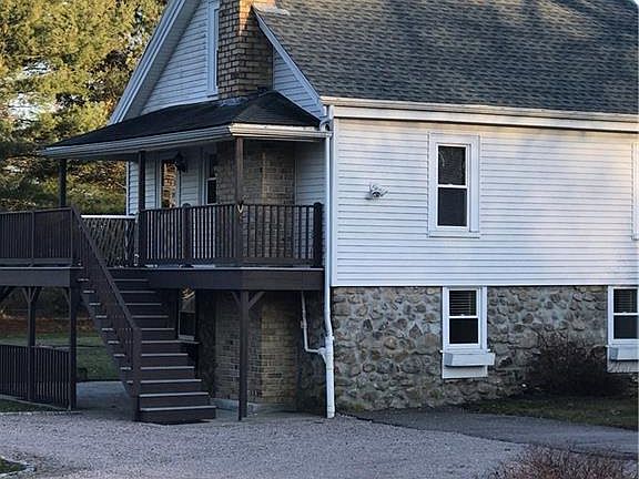 Move right into this immaculate 2 bedroom 1.5 bath home on Route 216 in Bradford. You'll fall in love with the charming stone foundation and large back yard. Enjoy .71 acres of outdoors on the stamped concrete patio, beautiful deck and shed for storage. Low maintenance vinyl siding and all replaced windows. Inside features a foyer with traditional staircase and oak wood floors. Large living room with fireplace and built-in shelving. The tiled kitchen is inviting and offers a breakfast bar , 2nd fireplace and tons of space for large dining room table. New washer, dryer and stove and newer roof. The master bedroom has an open area for walk in style closet or in home office. Overhead fans in all rooms. All of this with low property taxes $2,199.78