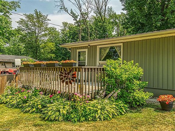 An original tiny home!! Well maintained, super clean one storey, 2 bedroom home with updated kitchen and bathroom located on park like 62x152ft lot with fenced yard and mature trees. Way down a private road, bordered by beautiful foliage and Nanticoke Valley creek - this home provides peace and privacy from the chaos of the world! Recently renovated kitchen features a butcher block countertop, stainless steel appliances, ship lap backsplash, white cabinetry and unique half wall look through to the living room. Laundry closet tucked away in tiny home style. Lots of bright windows. Patio door walk out to rear entertainment area shaded by mature trees. Lots of parking, metal roof, a 2000 gallon cistern and 2000 gallon holding tank - nothing to do here but breathe! Minutes to Hoovers marina - popular place to dine and enjoy, about 10-15 minutes to Port Dover. Make this great little place your new zone!