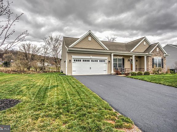 Stunning Landmark 1 story home, this meticulously cared for 5 year old home is located in the sought after Stoney Pointe neighborhood. As you walk in the covered front porch you are greeted with a large foyer and double doors to the formal living room that is well suited for an office or den. The 9' ceilings give a bright and airy feel to the open concept main living area featuring a gas fireplace with stone accents. Gourmet kitchen with stunning quartz countertops, two toned cabinetry and plenty of workspace & storage! Have your guests sit at the bar or in the dining area that overlooks the outside patio area. The spacious master suite is conveniently located on one side of the house and the two additional bedrooms & bath on the other! No lack of storage in the 2 car garage or the full unfinished basement! Showings begin 4/5. This home is conveniently located minutes from 222 & the PA turnpike.