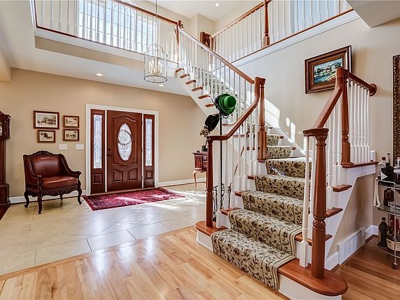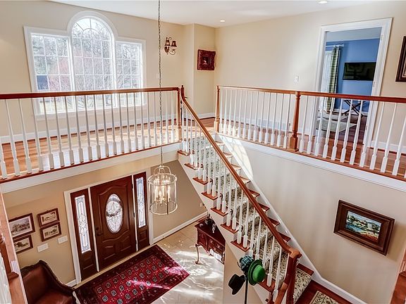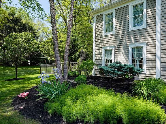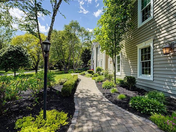 Step into luxury with this stunning newer colonial located within walking distance to Pittsford Village & the Erie Canal. Nestled in a tranquil neighborhood, this home boasts expansive rooms and contemporary amenities, offering a seamless blend of classic colonial architecture and modern functionality. Entertain effortlessly in the 2-story gourmet kitchen featuring high-end stainless steel appliances, granite counters with custom wood tile backsplash, walk-in pantry, and a center island perfect for culinary creations. Experience the comfort of oversized living spaces, including a grand Living room with gas fireplace & wet bar, and a gracious formal Dining room. Embrace flexible living with a 1st floor Office/Bedroom with ensuite bath; adjacent Mud room/kitchenette; Wine vault with barreled ceiling; 2nd floor loft. The laundry room, 4 bedrooms & 3 full baths are located upstairs, including a guest suite with private bath & a substantial primary suite with cathedral ceiling, walk-in closet & ensuite with double shower. Relax and unwind in the expansive backyard oasis, with a fully fenced yard, complete with stone patio & gas firepit, perfect for hosting gatherings.