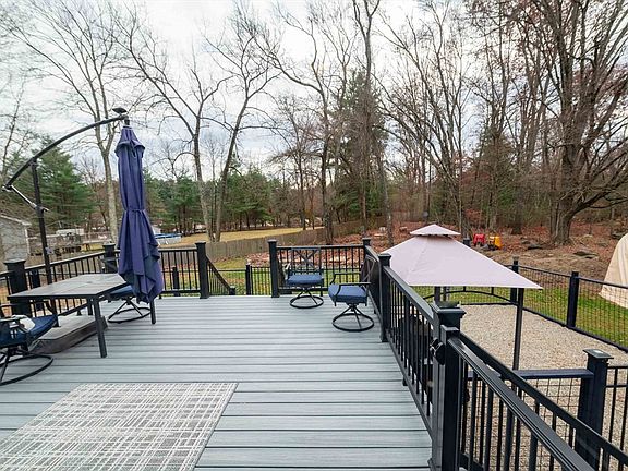 Don't miss this beautifully remodeled and updated 3-bedroom, 2 full bath home with an inviting open floor plan. This modern vinyl-sided ranch boasts vaulted ceilings throughout, adding a touch of elegance to every room. The living room features a bay window and a ceiling fan, creating a bright and airy space. The open kitchen, with its center island and dining area, includes stainless steel appliances, a skylight, sliding door leading to the deck, perfect for entertaining. The seller says you can dance in the kitchen and sing in the bathrooms, adding a playful touch to your daily routine! The primary bedroom offers a luxurious retreat with a large soaking tub, glass shower, double closets, and a ceiling fan. The partially finished basement provides ample potential additional living space. New solar system for cost savings.There is a fenced area in the backyard and plenty of outdoor space.You can also find your way to a nearby walking trail along the Ware River all on a dead end street.