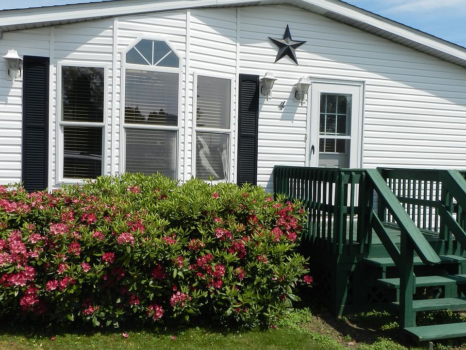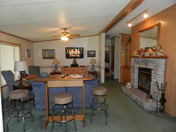 GREAT Condition Double Wide Home In Sunny Acres Park. Spacious, 3 Bedrooms, 2 Full Baths, Master Bedroom W/Large Soaking Tub and walk in closet. Eat In Kitchen has gas stove. Fireplace In Living Room. Central Air. Large covered Deck, laundry room, all appliances included, new blue roof on home, Great location!
