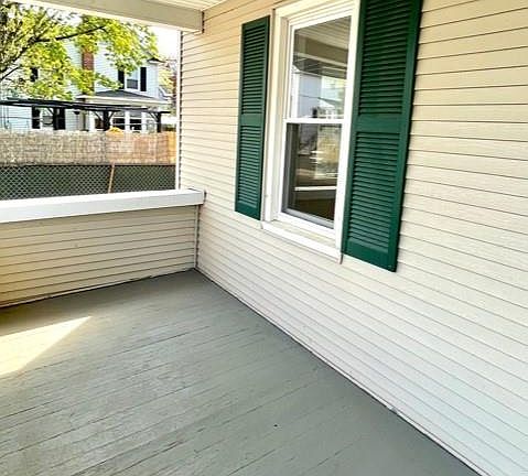 Wow Wait until you see the inside of this spacious colonial. A stunning kitchen remodel was just completed with white shaker cabinetry, gorgeous granite counters, subway tile backsplash, SS appliances, new laminate flooring and trendy shelving Beautifully refinished hardwood floors run throughout the dining and living room. All rooms have been freshly painted in a beautiful soft gray with white trim. Upstairs are two very generous sized rooms, a full bath and a smaller room that can be used as an office or exercise space all with gorgeous refinished hardwoods and fresh paint. An enormous walk up attic with windows allows for tons of storage or possible future expansion. The mud room is perfect for catching coats and backpacks and leads out to the deck and a perfect sized fenced yard for summer entertaining. Add a couple rockers to the front porch and enjoy the warm days ahead A 3 year old roof, updated windows and maintenance free vinyl siding are as added bonus. This home can easily be converted back to gas-meter in right side of house. Some lucky buyer is going to be thrilled to call 4 North Street home sweet home
