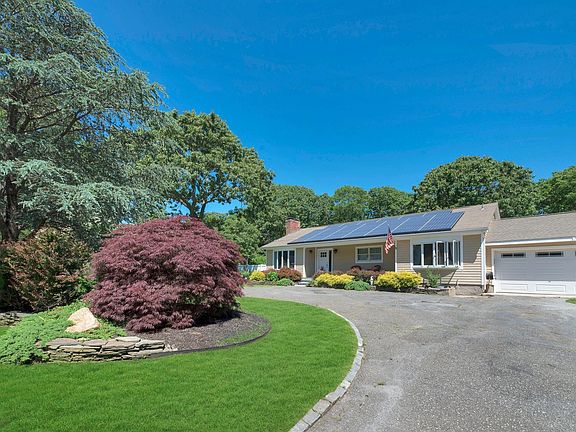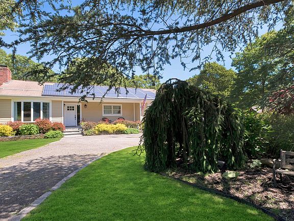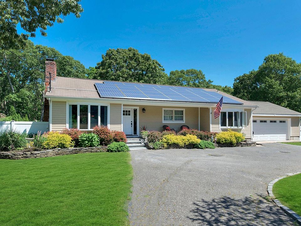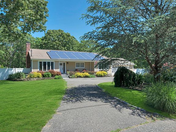 Swim suits needed! Lovely spacious custom ranch with inviting salt water pool and lush surrounding gardens. Backs up to preserved wooded land. Privacy unlimited. Open floor plan living room with fireplace, formal dining and eat in kitchen, master bedroom suite plus two guest bedrooms and bath. Finished lower level for great entertaining with walk out entrance. Fully owned solar panels. All this and the property is located on a cul de sac. Come see this dream home.