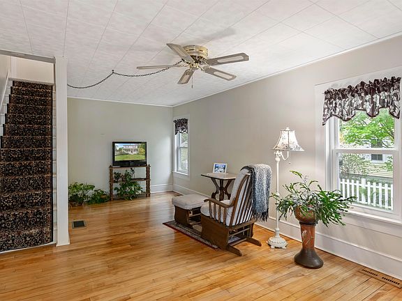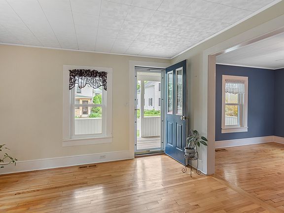 Filled with charm, this lovingly cared-for Four Square home in prime Essex Junction location is ready for its next owner! Offering 3 beds, 1.5 baths, and bonus spaces galore, plenty is to be enjoyed here. Upon entry from the covered front porch, step into the living room to be greeted by beautiful hardwood floors and plenty of natural light. Hardwood floors continue throughout the adjoining dining room, which opens to the quaint kitchen featuring an island. From the kitchen, access the ideal back enclosed porch with stunning woodwork and views of the backyard. Just imagine the relaxing summer nights that could be had! The first floor also offers a combined ½ bath and laundry room with updated finishes and lovely wainscoting, as well as access to the unfinished basement which provides dry storage space. Venture to the second floor to find 3 well-sized bedrooms and a full bath. As you explore, be sure to pay close attention to the small details that make this home unique, including glass door knobs and wide trim molding throughout. Outside, the property offers a massive oversized 1-car garage with a loft, a great space for storage, or potential for additional finished square footage! A Trex deck completes the fantastic landscaped flat lot. Situated on a dead-end street, but less than 5 minutes from Maple Street Park, the many shops and restaurants of Five Corners, and just a quick 15-minute commute to Burlington, this home’s location cannot be beat! Book your showing today!