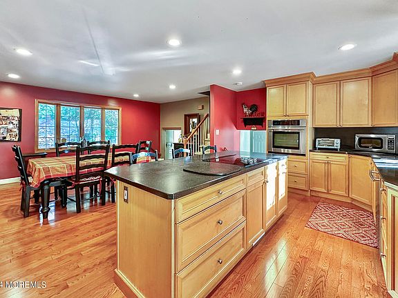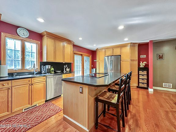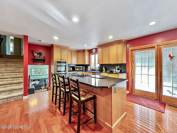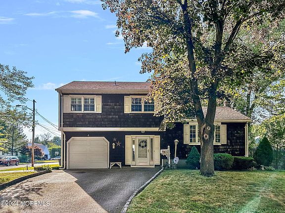 Welcome to this charming split-style home situated on a spacious corner lot in a peaceful neighborhood. This beautiful residence features an open floor plan perfect for entertaining, with the living area seamlessly flowing into the kitchen and dining space, creating a welcoming atmosphere. The home has three cozy bedrooms with a well-appointed full bathroom and powder room, providing ample space for family and guests. Sliding doors off the family room and kitchen provide direct access to a fenced yard with deck, patio and sheds. An attached one-car garage is ideal for storage or parking. This home offers convenient access to Jersey Shore beaches, beautiful parks, shopping, restaurants and is just a short commute from NYC.