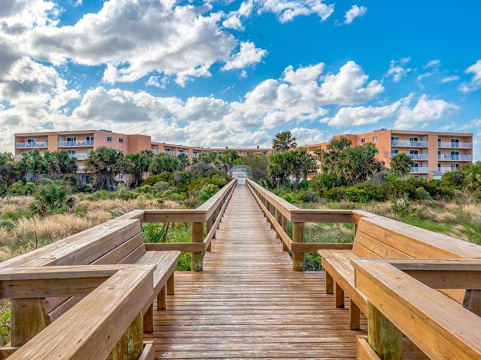 In demand, but hard to find: a spacious 3 bedroom condo with sweeping ocean and pool views in St. Augustine Beach and Tennis Club. This 3rd floor unit, accessible via elevator, is a roomy 1539 sf of living and lounging space plus a large balcony for morning sunrise and watching the waves roll in. There are tile floors throughout, new HVAC (2020), new electric, a tankless on-demand hot water heater, and plenty of storage space with walk-in closets in the master bedroom, guest room, and living