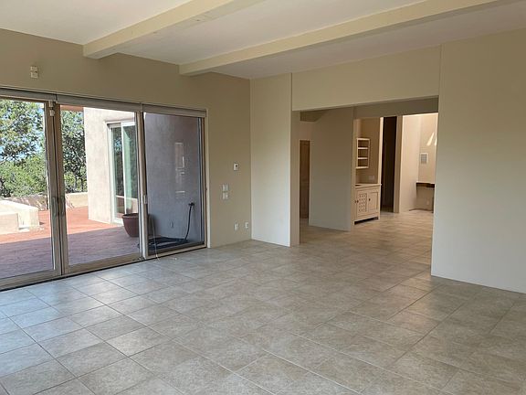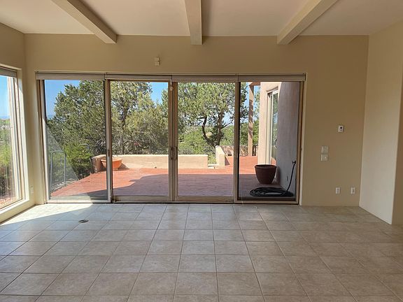 Tile floors first story, carpet, second story. Radiant heat, 2 splits for heating/cooling. Property sits, as one of two houses on 8.2 acres, surrounded by pinon and juniper trees, landscaping included. Very quiet and secluded. Three indoor fireplaces, one outdoor, with a very sizable patio area with a great view of the surrounding land. Newer kitchen appliances, additional fridge in garage. Heated garage. Stucco patched and repainted. Tankless water heater. Newer roofs.
