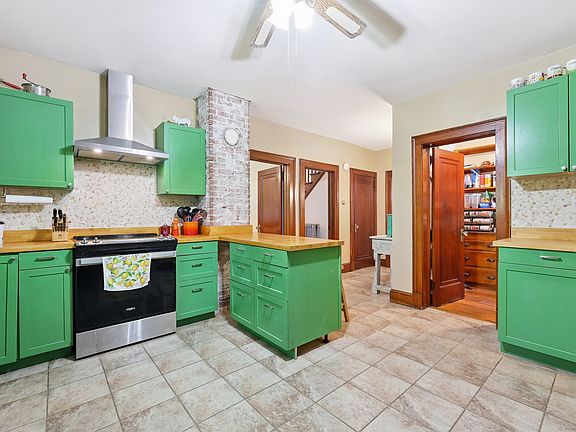 Charming Country Farmhouse on 1.5 Level Acres!! Enjoy modern comfort in this beautiful 2,097 square foot home featuring 4 bedrooms, updated kitchen with stainless appliances, and original character details like a butler's pantry, original woodworking and gleaming hardwood floors throughout. The welcoming enclosed front porch leads to spacious living areas including a country kitchen flowing into the formal dining room, bright front-to-back living room, and a convenient mudroom and 1st floor laundry room. Upstairs offers four well-sized bedrooms with ceiling fans and an updated full bath. The walk-up attic provides expansion potential, while the oversized 2-car garage includes a workshop space. Complete with vegetable gardens, a large yard, and timeless farmhouse charm, this property perfectly blends yesterday's character with today's lifestyle.