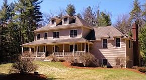 This 4-bedroom hip-roof Colonial with wrap-around mahogany farmer's porch is beautiful! Sit by the wood-burning fireplace in the family room with cathedral ceiling, new hardwood floors and sliding door access to a multi-level Trex deck. Cook dinner on the Jenn-Air gas range in the kitchen that also features cherry cabinets and granite countertops; be the first to use the stainless refrigerator and dishwasher. A French glass pocket door leads to the formal dining room with hardwood floors. The 2nd floor has brand-new wall-to-wall carpet, the upstairs hallway bathroom?s double vanity has new Kohler faucets, and the master bath, with its double vanity and Jacuzzi tub, has new faucets and shower door. The house is equipped with central vacuum, air conditioning, custom millwork, walk-up attic, fresh paint inside and is wired for a generator. The 4.5+ acre private lot abuts conservation land and is just a mile from Amherst Village. Enjoy privacy while remaining close to everything you need! Brokered And Advertised By: Bean Group / Bedford Listing Agent: Gina Aselin