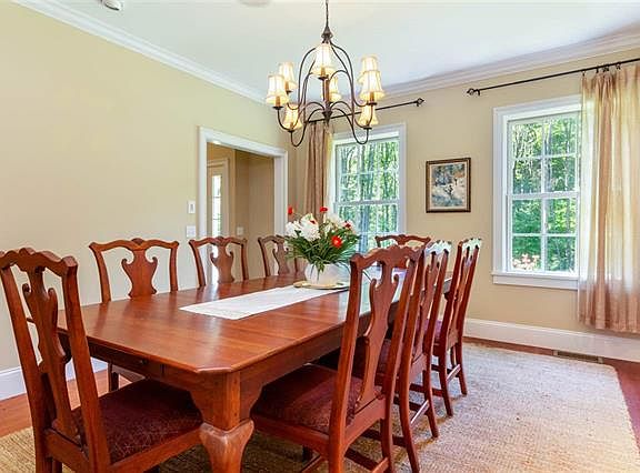 The look & feel of an old farmhouse with modern amenities! This beautiful, energy efficient home is filled with high end finishes from the inset cabinetry and wide plank pine flooring throughout the main floor, to the stunning walnut countertops on the kitchen island. The spectacular chef's kitchen offers a gas cooktop, double wall ovens, smart fridge and dishwasher, and stainless-steel appliances! Enjoy a family meal in the eat-in dining space with access to the back patio for easy summertime grilling. The living room with a built-in bar space and wood fireplace makes for a cozy retreat after a long day. Or, escape to the 3-season porch with Douglas Fir flooring and walls of windows facing the lush surroundings. A private front room off of the main entrance offers built-in storage, great for a home office, library or playroom. A spacious dining room rounds out this floor. Upstairs, the master bedroom includes a custom walk-in closet and dressing area. Enter the master bath to find a stunning freestanding tub with separate shower, double vanities, and private toilet room. The second floor also includes 3 other bedrooms and a large bonus room with a separate staircase leading to the mudroom. Outside, a crushed stone patio runs along the back of the home, leading to a firepit where youâll enjoy endless summertime fun. This private lot with almost 3.5 acres is the perfect peaceful retreat, while still close to town and 10 minutes to I-89! Delayed showings begin 7/20/19