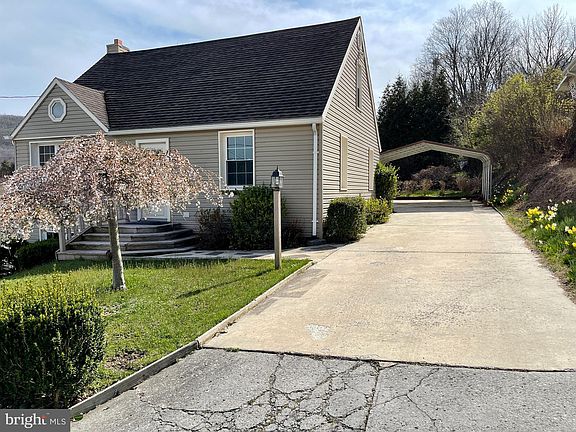 Prime location adds to the well rounded package of this home. Beautiful mountain view from the front window, rear garden and second story deck off the Primary Bedroom!! This lovely cape cod boasts three bedrooms with attached full baths! The Primary Bedroom offers a walk-in closet, jetted tub and an 8x10 deck to relax and enjoy the views. The Living and Kitchen combo are perfect for entertaining and presents the perfect flow to the rear patio and garden. The separate dining room is ready for those holidays meals and lots of family! The unfinished basement is just waiting to be a man-cave, get your plans ready! Close to all conveniences and easy access to I68. This lovely home has new carpet and LVP - sure to please all styles! The 2-car carport is sure to keep the sun and snow off your vehicles, and convenient access to the back door.