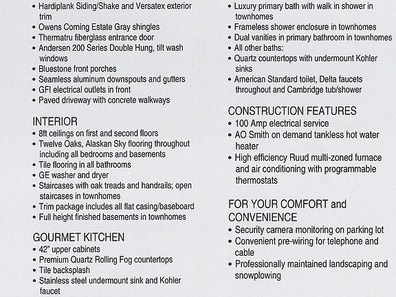 NEW CONSTRUCTION IN GREENWICH. 3 bedroom/3.5 bath townome in a small complex just being completed. Gourmet kitchen with premium Quartz countertops and tile backsplash. Stainless appliances and 42-inch white upper cabinets for tons of storage. Open plan kitchen/dining/living area with island seating and a slider to your private patio. Large entry foyer w/ powder room. Each of the 3 bedrooms has its own bathroom. The Primary bedroom has a custom built-in-storage wall and a bath with double vanities and walk-in-shower. Laundry on the 2nd floor. Ample storage in the basement. The townhome is full of light with large windows, easy-care engineered wood flooring, high efficiency heating & cooling, on-demand hot water. Two assigned parking spaces. Walk to shopping, dining, multiple parks in Cos Cob village and tp the Metro North commuter station. Pet friendly. Immediate occupancy. Call for more details. Tenant pays for gas, electricity, water and trash collection. Landlord pays for grounds care and snow removal. First month's rent and 2 months' security payment due at lease signing. This is no-smoking complex. Inquire about pet policy. Two parking spots outside your front door.