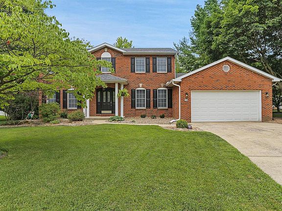 This stately 2-story home sits on nearly acre tucked away on a quiet cul-de-sac in the heart of Edwardsvilleclose to MCT trails, schools, shops & restaurants! Rich hardwood floors & an open staircase greet guests in the foyer of this flowing floor plan. A formal dining room & lounge/office w/ French doors flank the entry. A light, bright kitchen features new stainless appliances, modern subway tile backsplash, bfast bar & ceramic tile floors. Just beyond, the living rooms brick, gas fireplace adorned by 2 decorative windows provides the perfect focal point. A bath & laundry room w/ wet sink complete the main floor. Upstairs is the vaulted owner suite w/ attached bath & walk-in closet, 3 addl bedrooms & full bath. Host movie nights in the newly renovated basement w/ a hobby room & full bath. Entertain guests on the deck or spacious, stamped concrete patio overlooking the generous backyard w/ raised garden beds & serene pool surrounded by lush landscaping for added privacy!